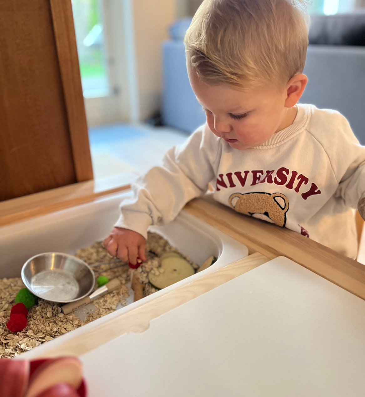 Duik in de wereld van sensorisch spel en open einde speelgoed, waar leren en ontwikkelen hand in hand gaan. Ontdek ons unieke aanbod voor kinderen van 0 - 6 jaar en stimuleer spelenderwijs de zintuigen. Wij veranderen elke week de thema's en het speelgoed zodat je gerust nog eens terug kunt komen. Als ouder kan je met je kindje meespelen of genieten van een kopje koffie of thee. Laat het opruimen naderhand aan ons over.